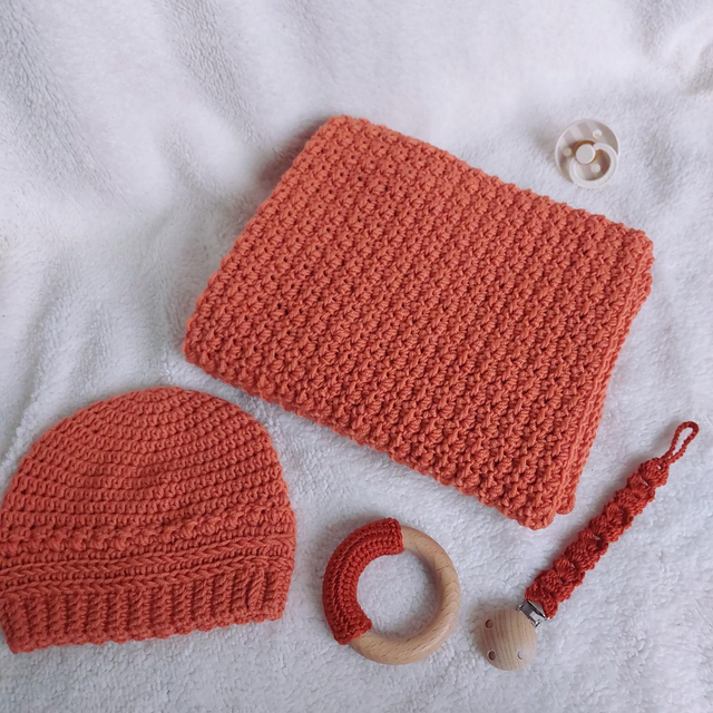 Sous ses teintes naturelles et ses mailles délicates, ce coffret naissance réunit l’essentiel pour entourer bébé de tendresse dès son arrivée. Chaque pièce est patiemment crochetée à la main et imaginée pour traverser le temps et devenir un précieux souvenir de ces premiers instants.